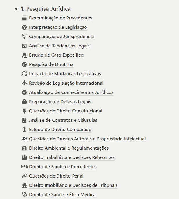 Com acesso aos mais de 2.000 comandos avançados no ChatGPT, você irá simplificar pesquisas jurídicas e a automatizar tarefas repetitivas, sem exigir de você horas intermináveis de aprendizado em tecnologia ou comprometer a confidencialidade dos seus clientes.