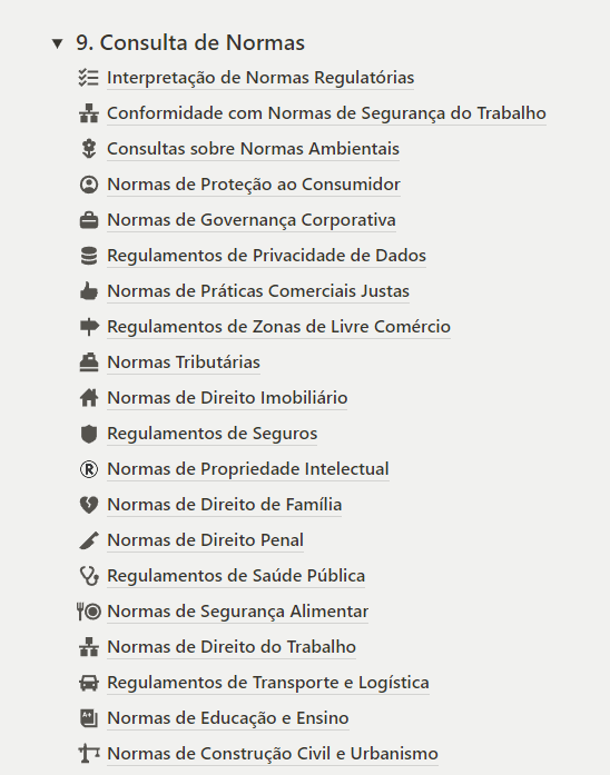 Obtenha um resumo rápido das normas regulatórias em setores específicos, auxiliando no compliance.